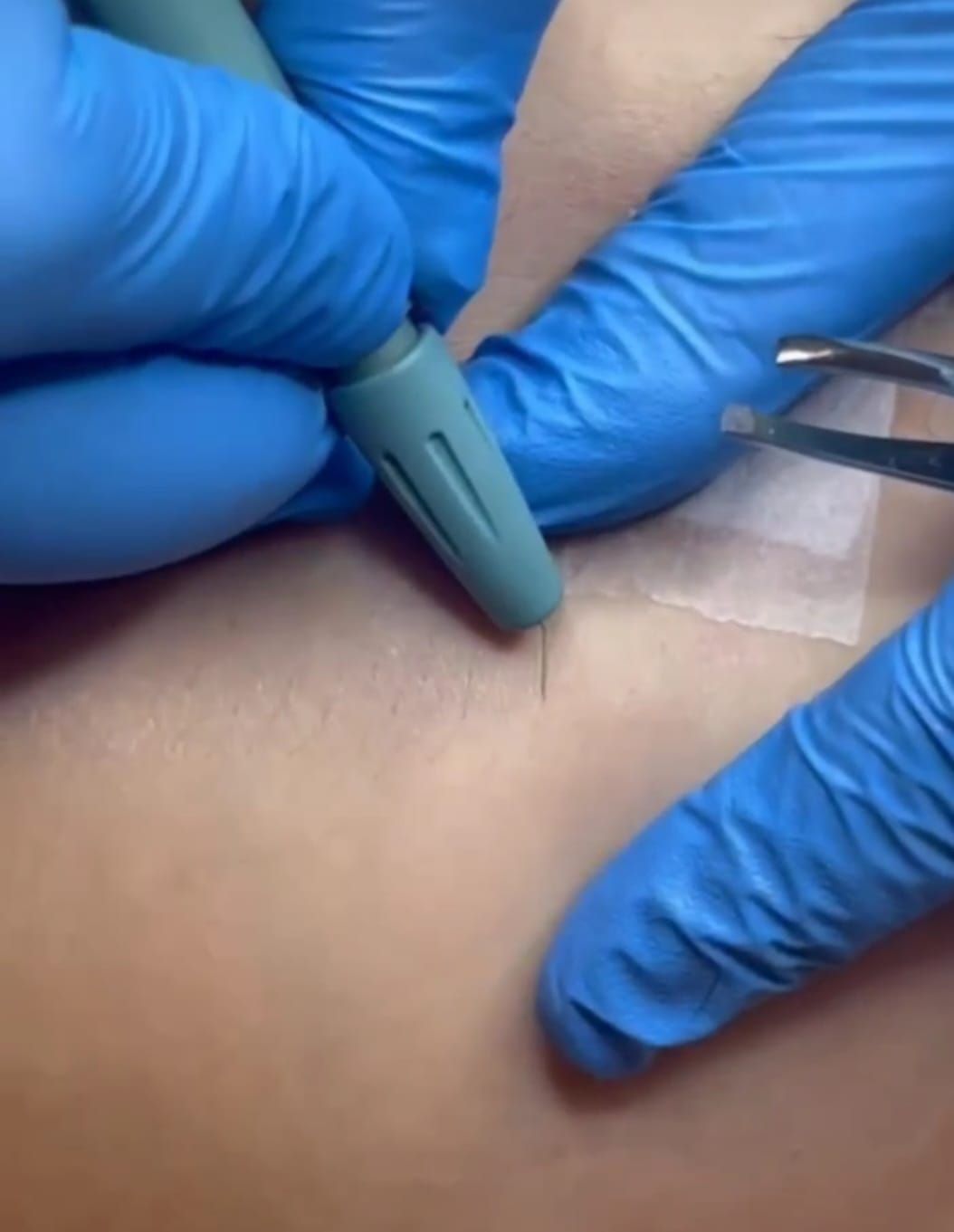 Tambien conocida como electrólisis, es un metodo de eliminacion de vello definitivo que destruye el foliculo piloso uno a uno mediante una microaguja desechable que aplica una corriente eléctrica que destruye la raíz, impidiendo que vuelva a crecer.